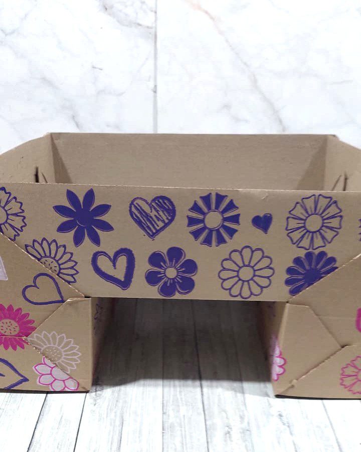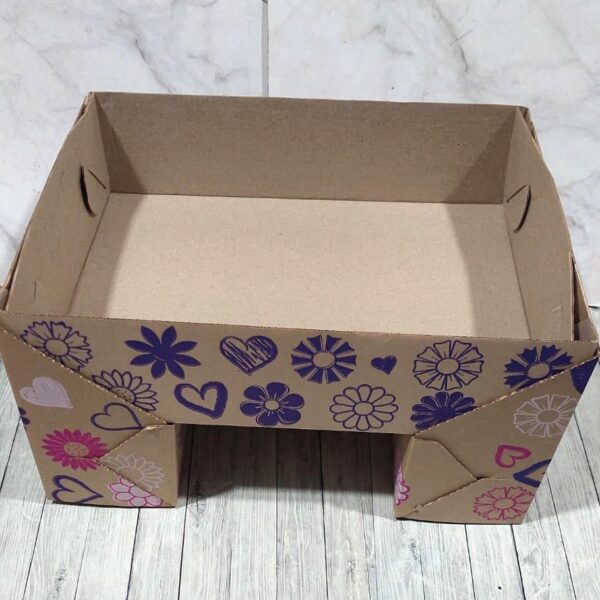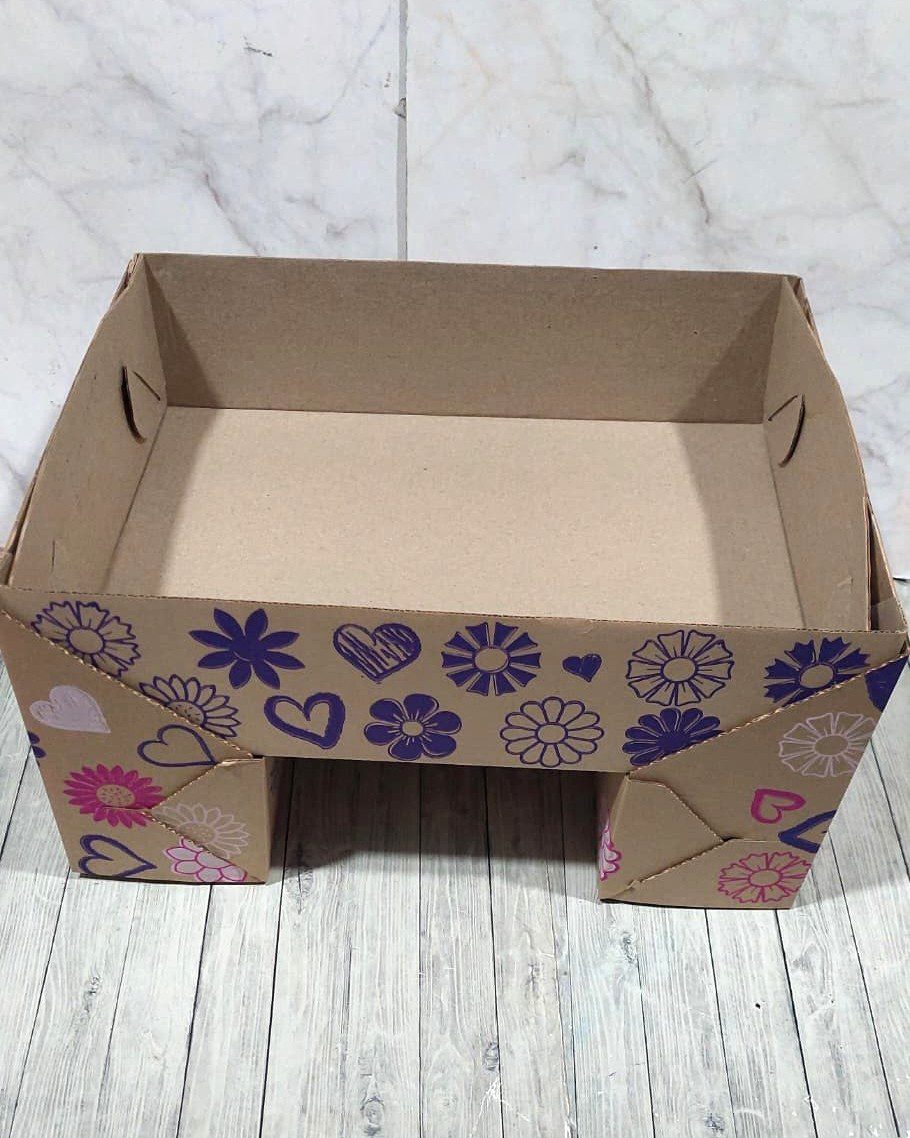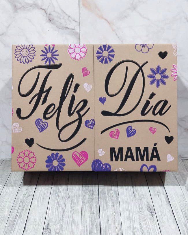 Caja craft estampada modelo mesita para el dia de la madre. Medida armada 25x35x9 cm.
