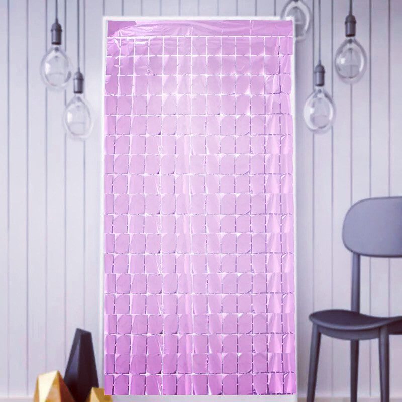 Cortina metalizada cuadros roja de 2 mts de alto y 1 metro de ancho, variedad de colores para decoración.