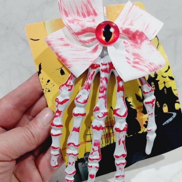 Hebilla para el cabello moño con mano sangrienta esqueleto x 1 $4.000,00