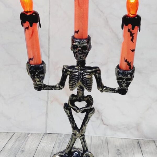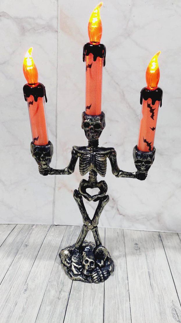 Candelabro de 3 velas led esqueleto a pila 36 cm