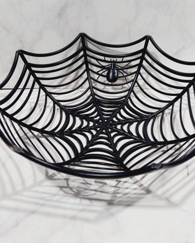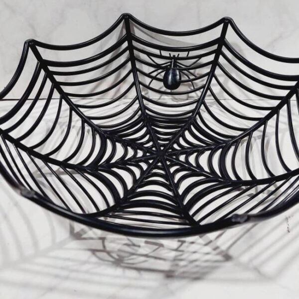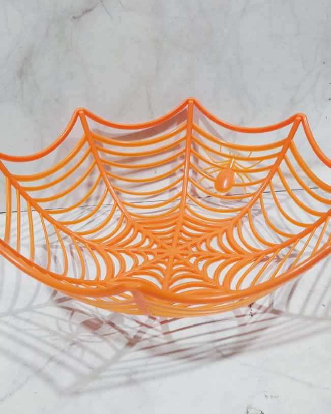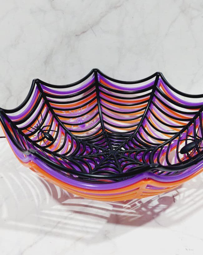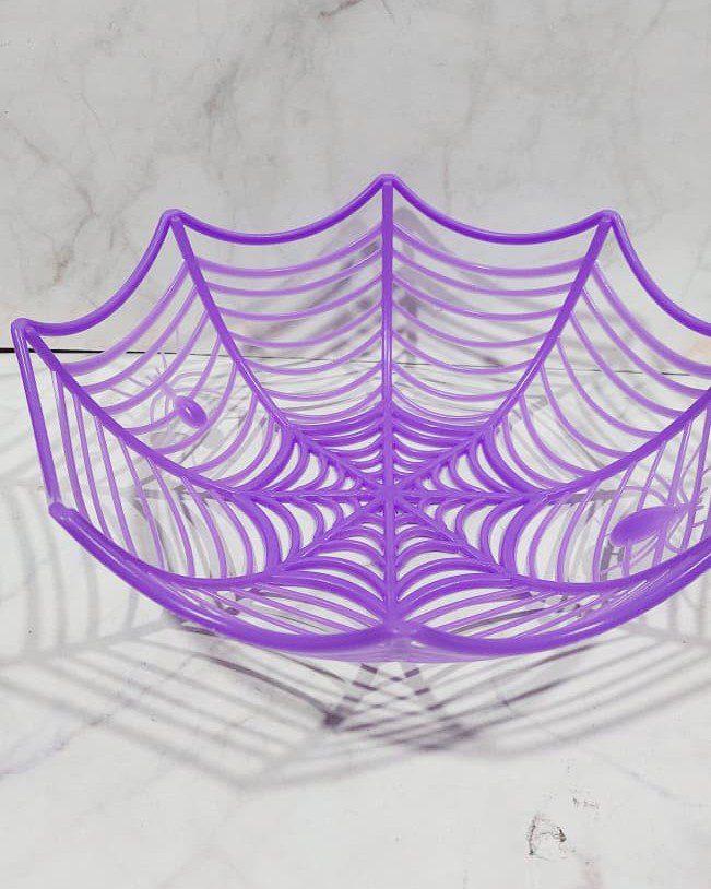 Caramelera plástica tela de araña para golosinas, diámetro aprox 27 cm , viene por unidad, colores disponibles negro, naranja y violeta