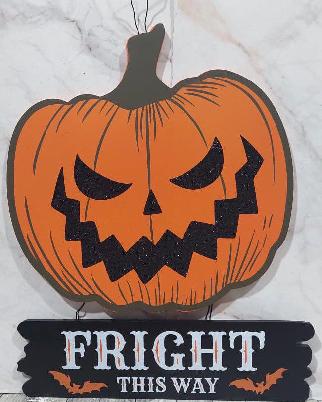 Inicio Tienda Halloween Decoracion Cartel colgante de fibrofácil calabaza