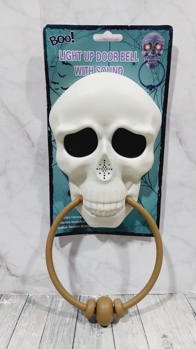 Llamador timbre para puerta con luz y sonido Calavera 30 cm