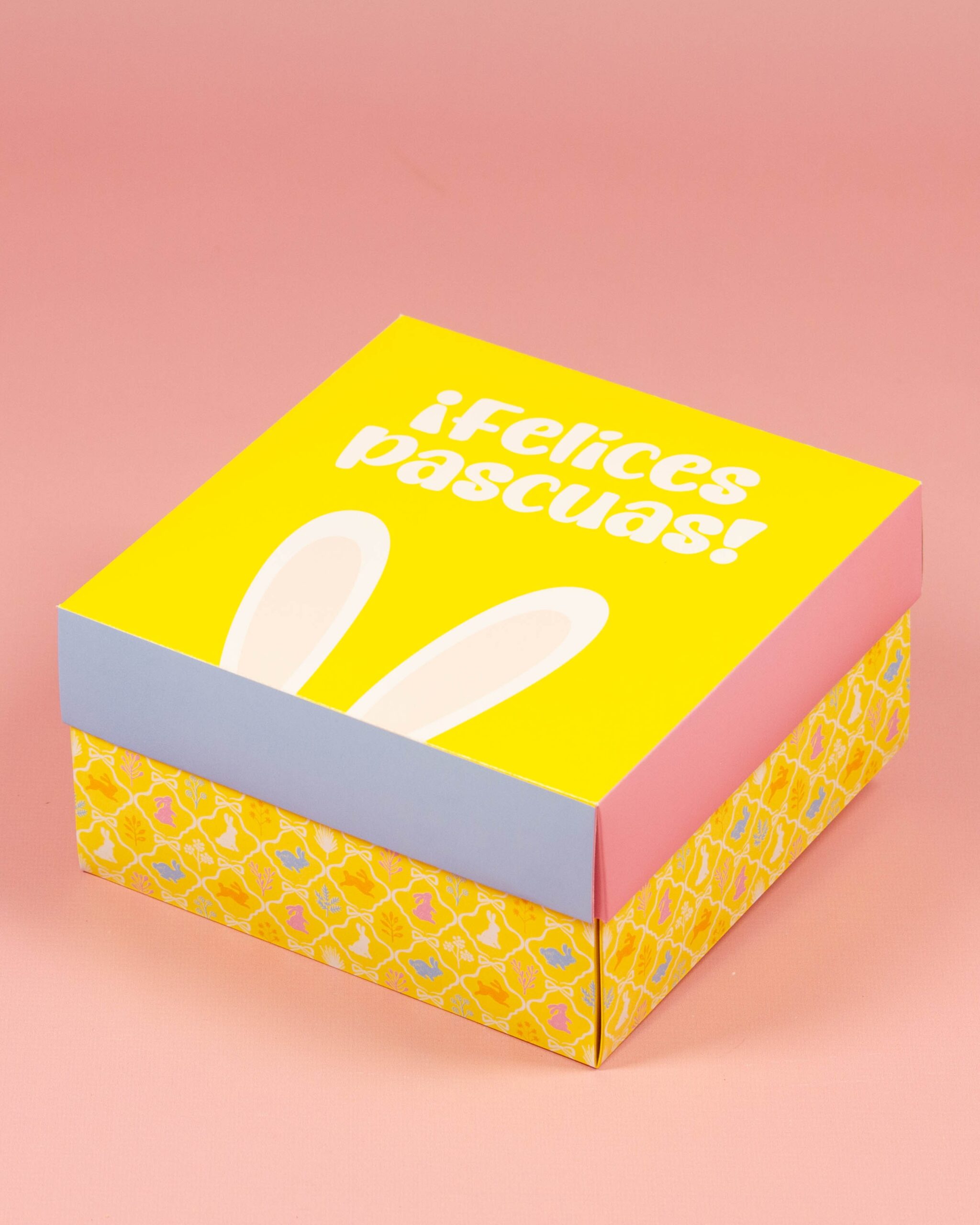 Caja Sorpresa estampada para medio huevo de pascuas Nº 12 ó 15 , único estampado, no incluye cuchara. Medida aprox 20 x 20 x 10 cm .