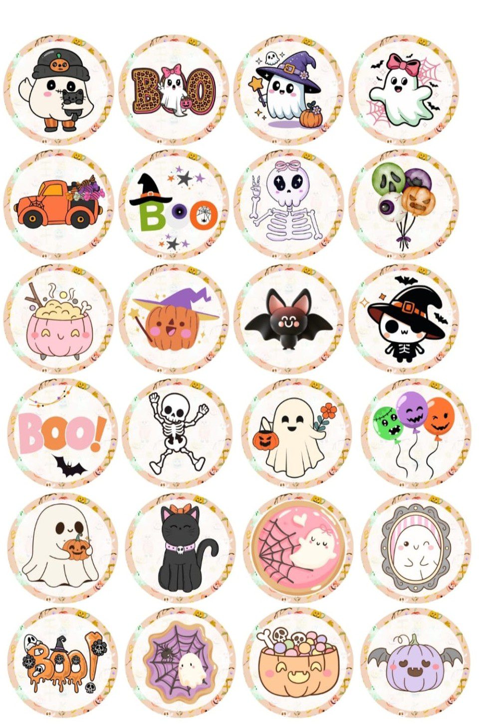 Lámina comestible chocotransfers para trabajar con chocolate blanco para Oreo x 24 círculos, motivo Halloween.