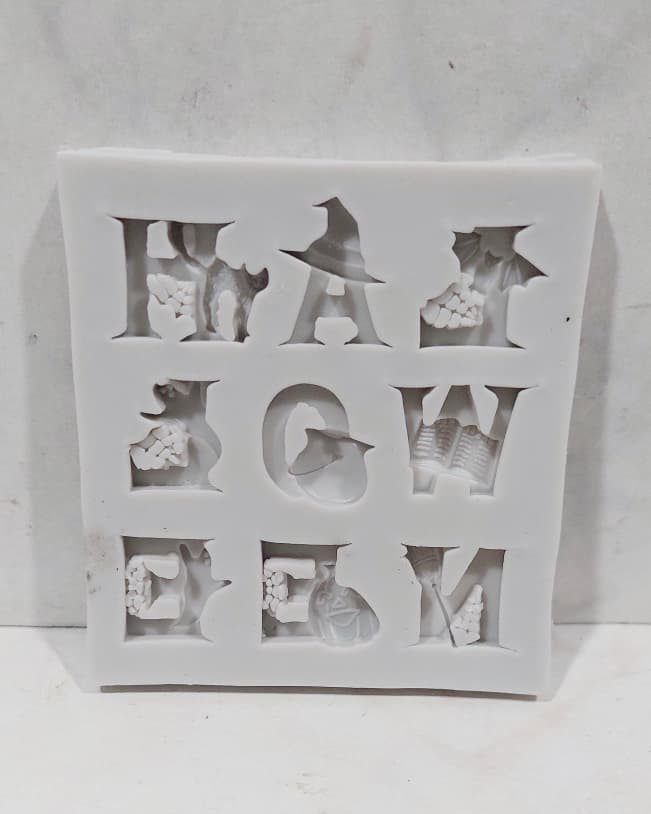 Molde de silicona palabra HALLOWEEN. Medida de alto aprox 2 cm