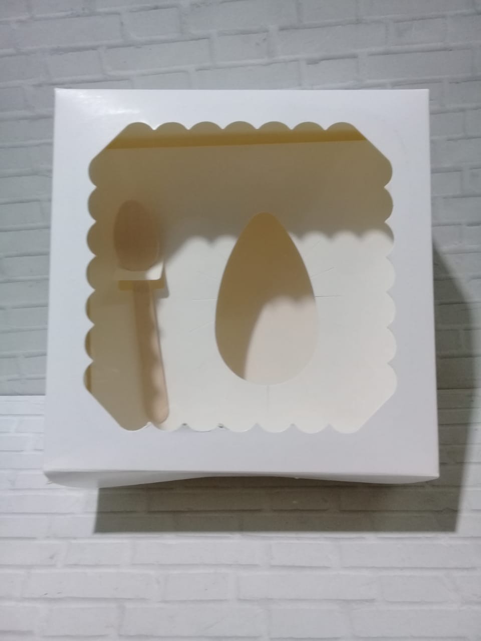 .Caja blanca con visor para medio huevo de Pascuas Nº 15. No incluye cuchara.